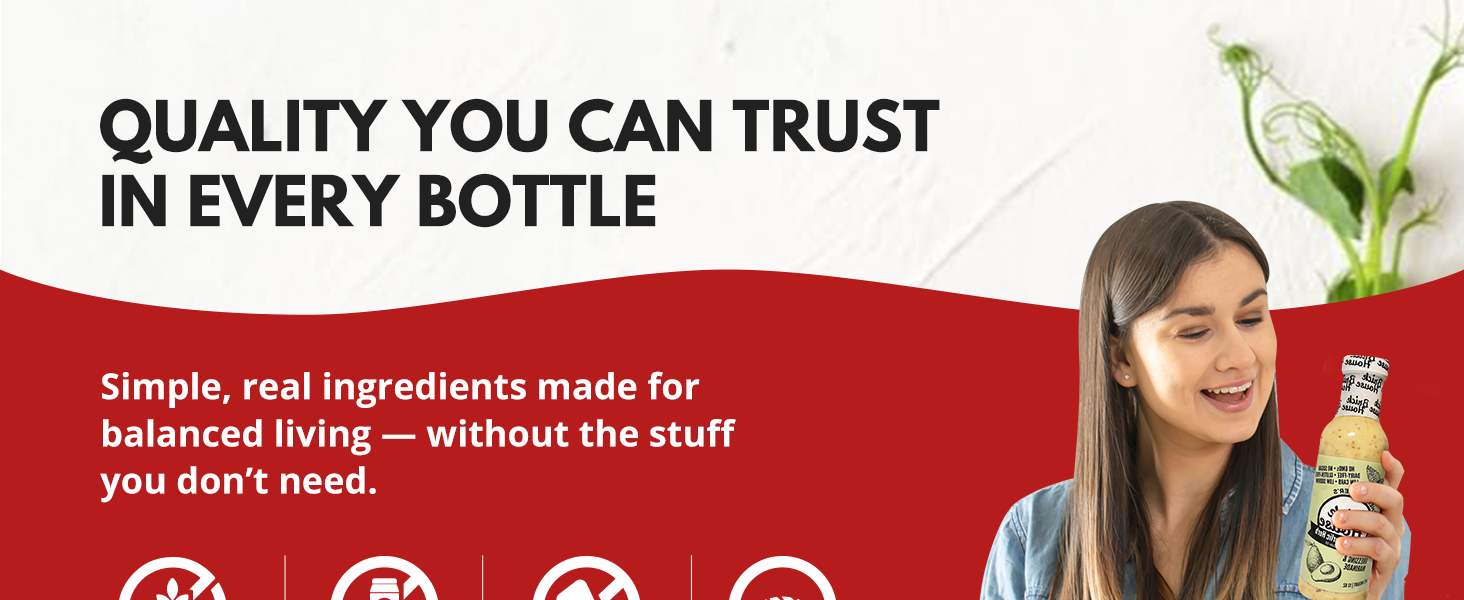 • Our Creamy Garlic Herb Vinaigrette delivers a rich, velvety texture with the indulgent taste of a classic creamy dressing, yet it’s completely dairy-free.