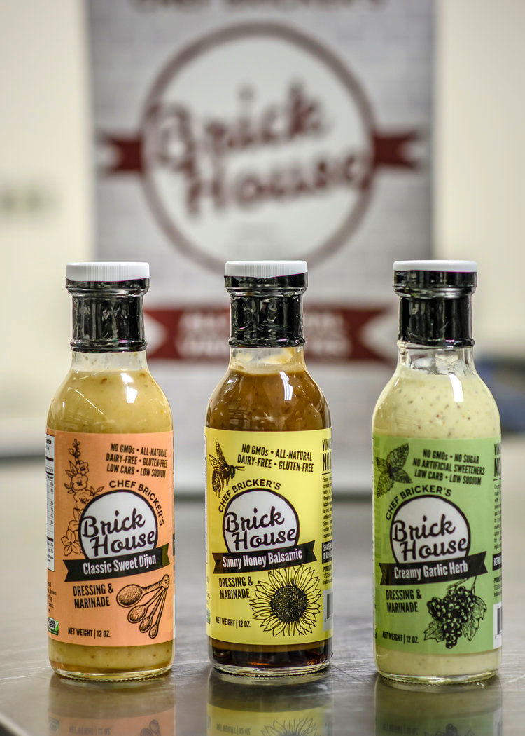 In 2014, Chef Bricker decided to revive his Classic Sweet Dijon Vinaigrette recipe and bottle it for sale at local farmer’s markets with the prompting of his family. The recipe was modified to focus on Non-GMO oils and lower carbs and sodium in response to the lack of healthy vinaigrette and marinade options in the market. Consumer response in farmer’s markets led to the development of Creamy Garlic Herb, a no-sugar vinaigrette option, with no artificial sweeteners featuring organic Stevia leaves and herbs to achieve an even lower amount of carbs per serving. Consumer input also lead to the development of the Sunny Honey Balsamic Vinaigrette which features a locally sourced cold-pressed sunflower oil and is also low in carbs and sodium.
